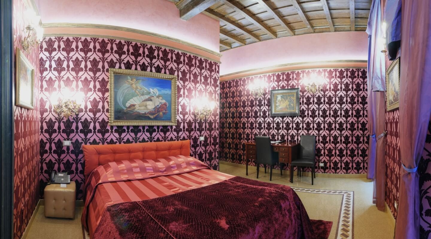 Scegli la sistemazione più adatta alle tue esigenze , tra le esclusive ed eleganti camere nell'Hotel delle Cinque Lune a due passi da Piazza Navona, oppure le camere spaziose e affrescate della seicentesca Antica Dimora dell'Orso, sulle rive del Tevere davanti a Castel Sant'Angelo. O ancora le prestigiose suite dell'Antica Dimora De Michaelis a poca distanza da Piazza Navona e Campo de' Fiori.