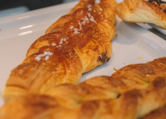 La nostra varieta’ di te e infusi, caffè espresso Lavazza e cappuccini cremosi, Buffet dolce e salato con prodotti del nostro forno Rosamunda’s: focaccia di farro a lunga lievitazione, pan brioche e croissant artigianali, torte e dolci rigorosamente fatti in casa dal nostro pasticcere.
