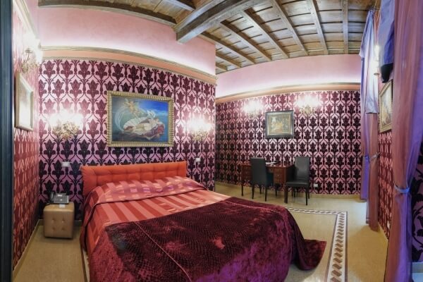 Compact but comfortable. Room for 2 adults in the same style as the other rooms, with frescoes, refined wall decor and luxurious fabrics.It is equipped with free WiFi, air conditioning, a flat-screen TV and a mini-bar.